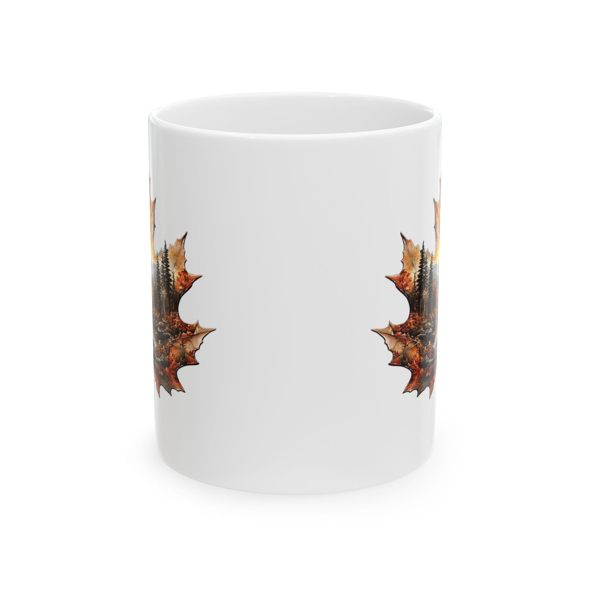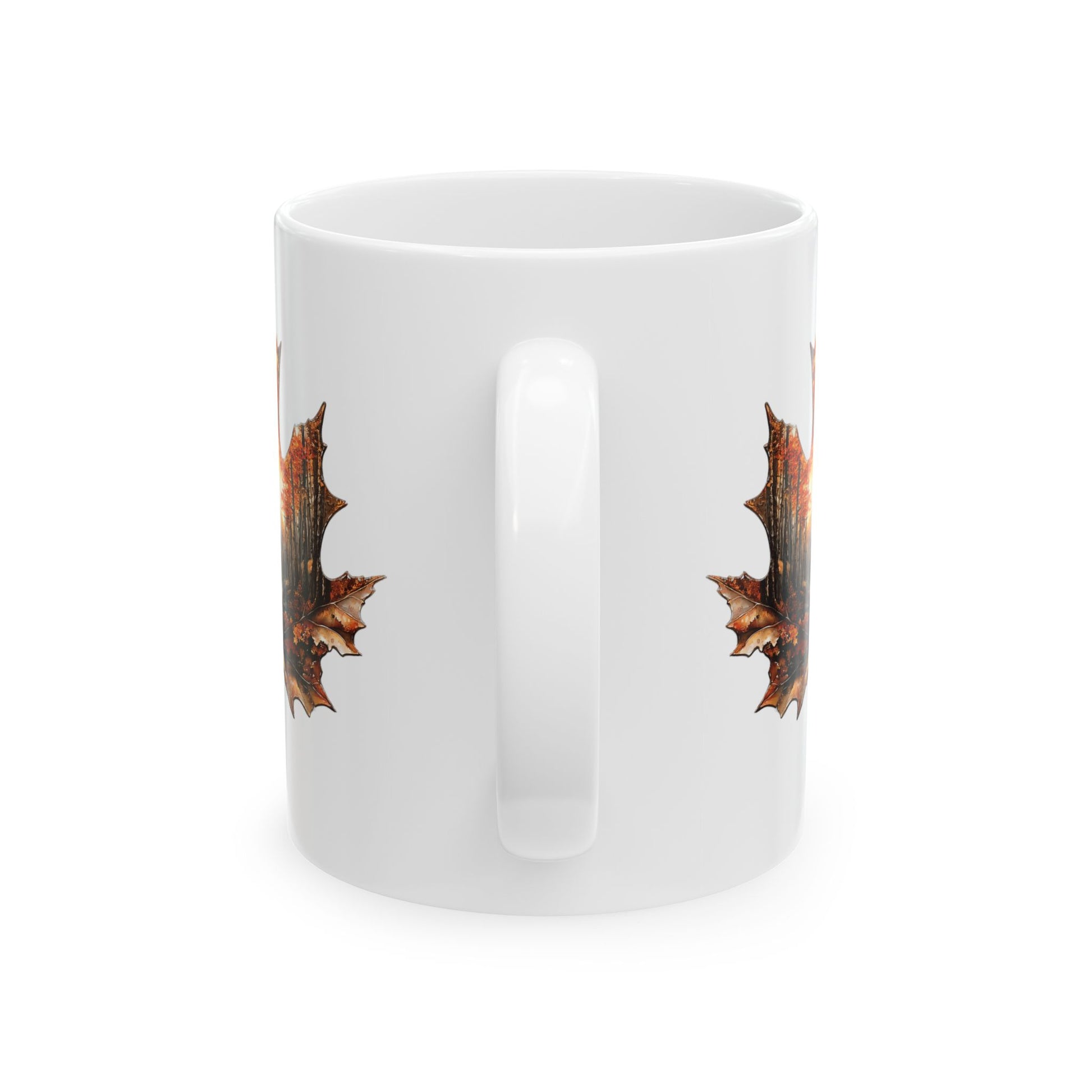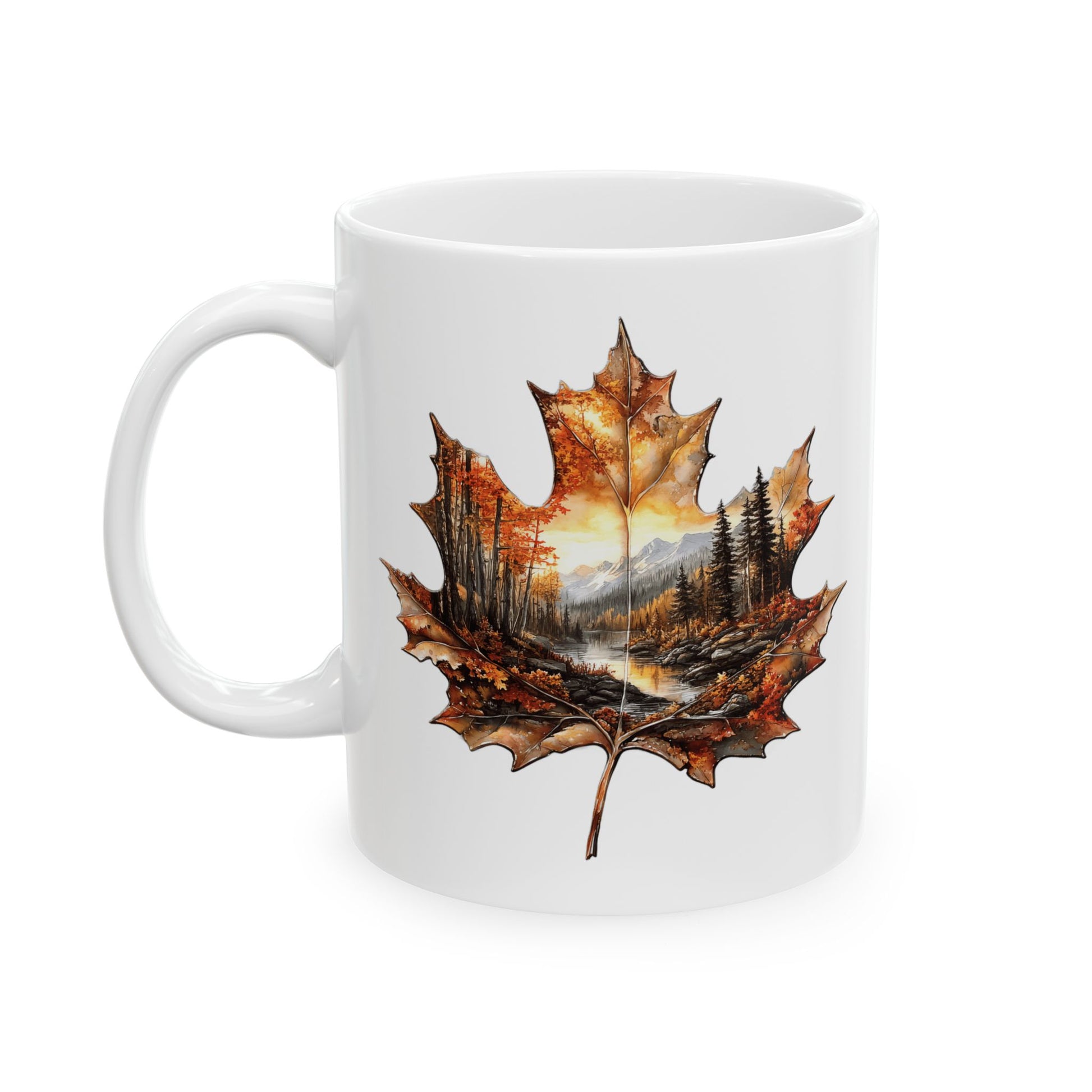 A warm, ceramic mug painted with a lone autumn leaf—its edges curled and colors deepening from amber to burnt sienna. Each morning feels like a slow walk through a quiet park: steam rising, the leaf’s watercolor texture catching light, and the glossy white backdrop making the motif pop. Built for everyday sipping, this mug brings a small, reflective moment to coffee, tea, or cocoa routines and pairs naturally with crisp mornings, cozy book nooks, and autumn gatherings.