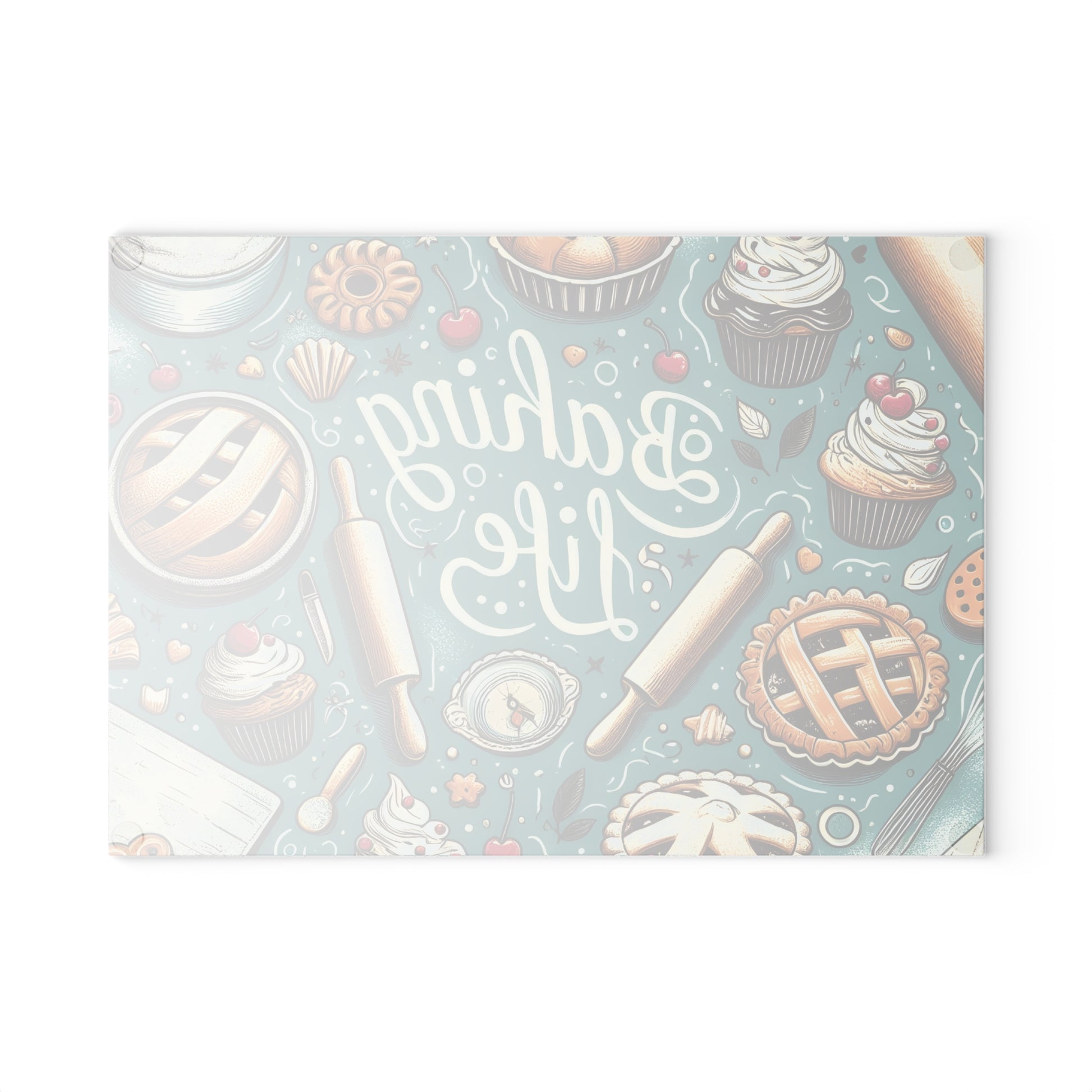 ‘Baking Life’ Kitchen Glass Cutting Board.