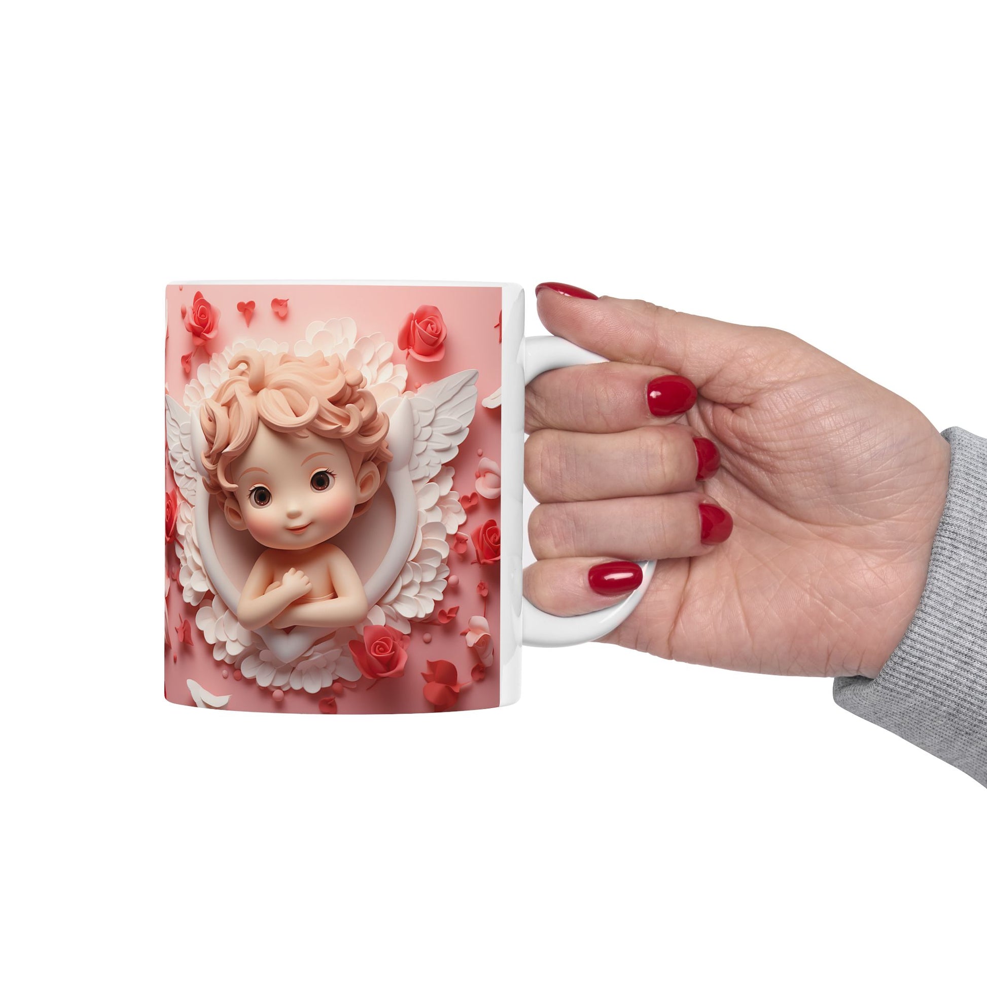 Cupid Angel Valentine’s Day Rose Pattern Gift Mug