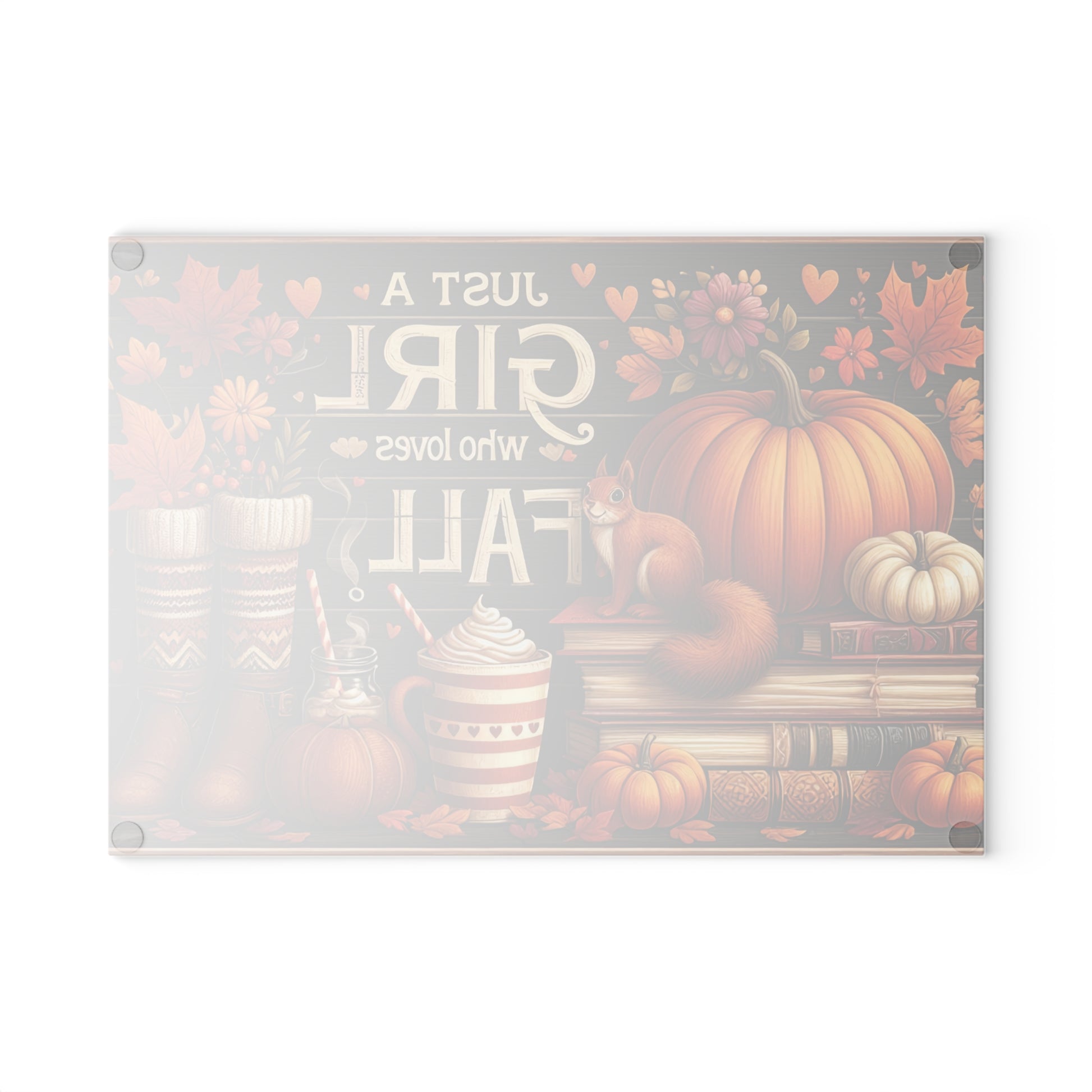 "Just a Girl Who Loves Fall" Pumpkin & Cozy Autumn Kitchen Decor Glass Cutting Board.