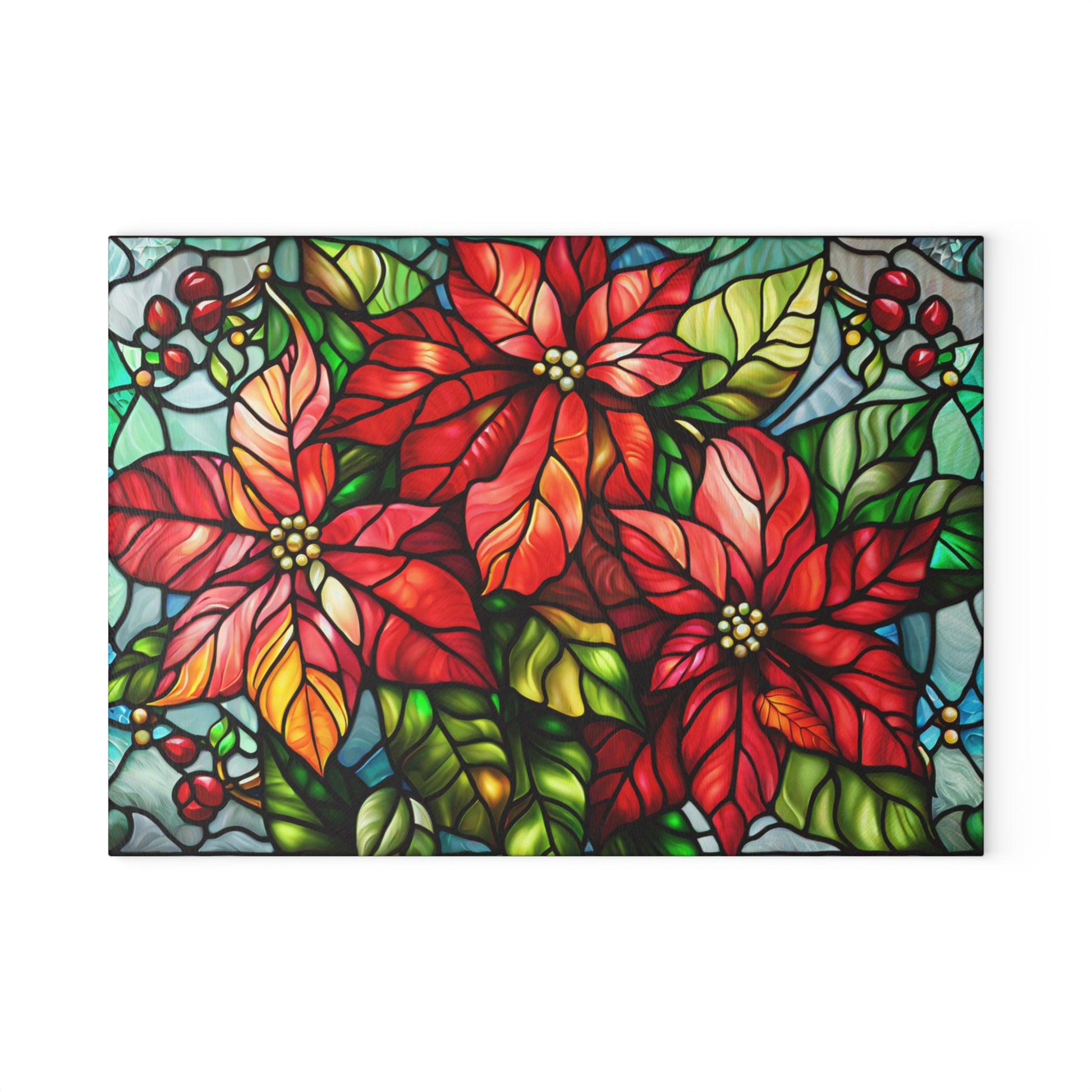 Poinsettia Stained Glass Glass Cutting Board