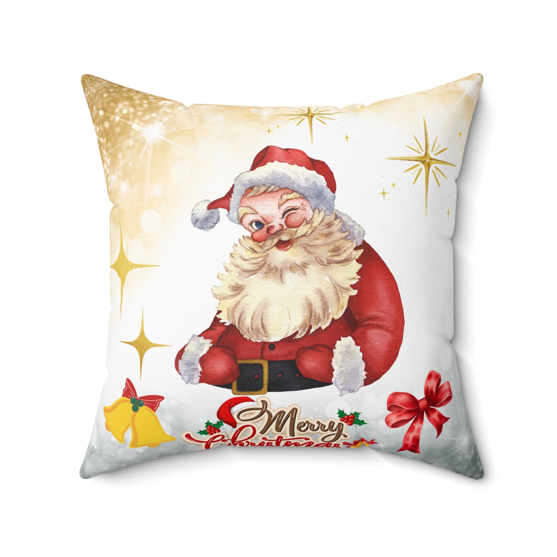 A cozy, vintage-inspired square pillow that brings a warm, nostalgic Santa scene to your holiday nook. Soft spun polyester holds the illustration’s rich reds and warm golds without wrinkling, while double-sided printing keeps the motif vivid from every angle. The concealed beige zipper blends into the design, keeping lines clean. Comes with a slightly oversized recycled polyester insert packed separately so the finished pillow fluffs up full and plush when assembled. Tuck it into an armchair, layer it on a sofa, or place it on a bedroom bench to add a gentle, familiar Christmas glow to your home.
