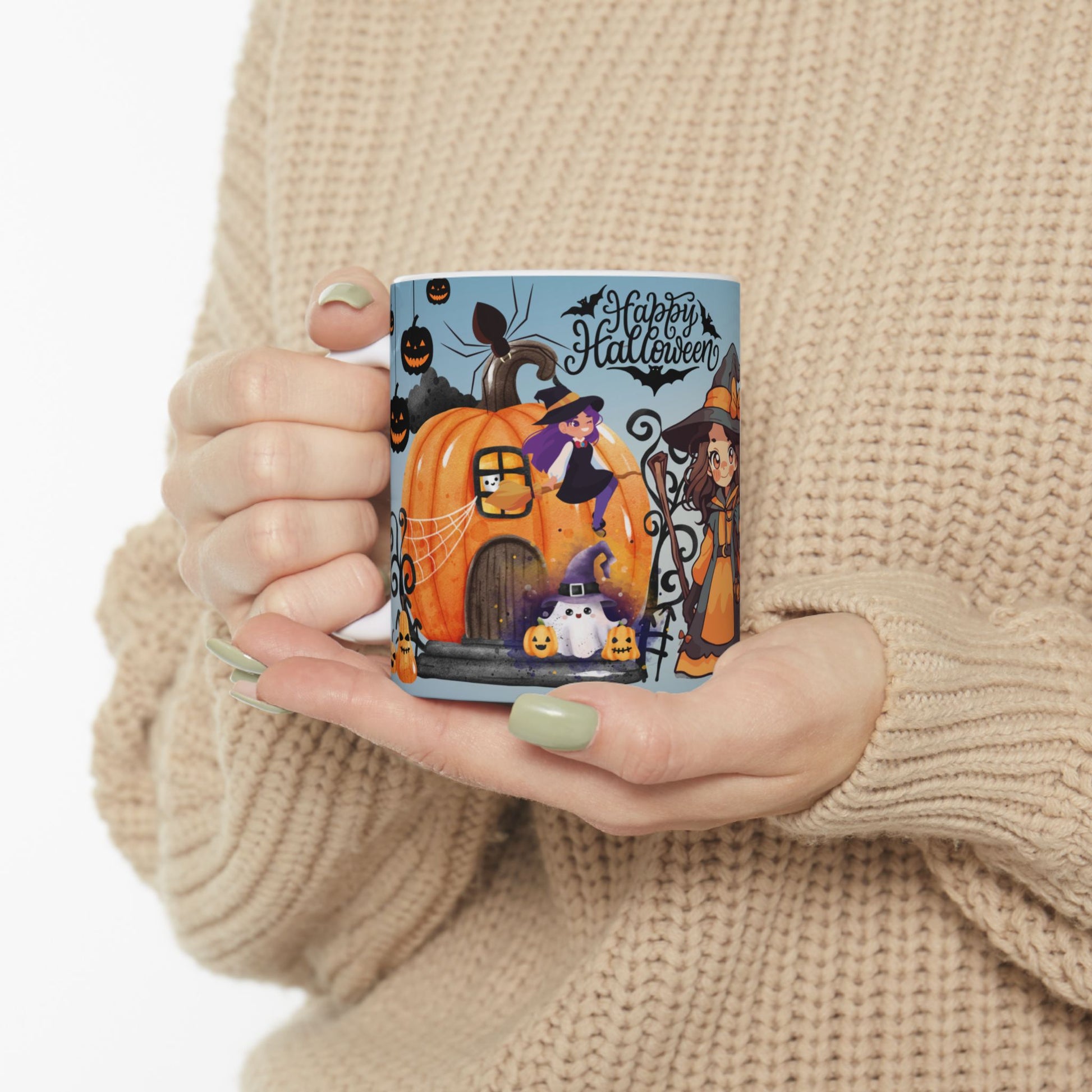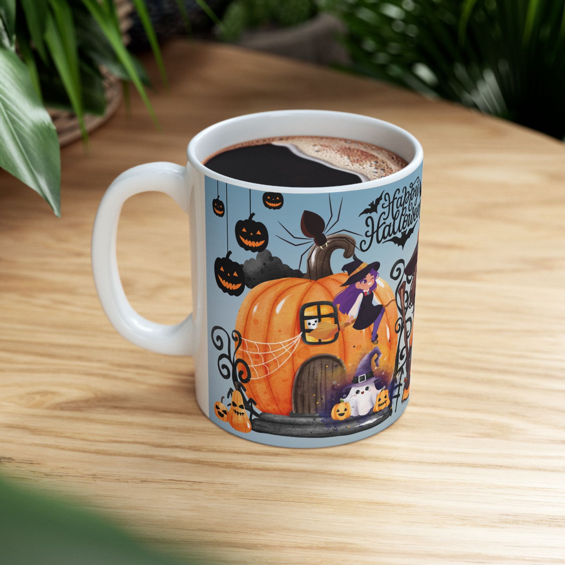 แก้วเซรามิกฮาโลวีน | ลายแม่มดสุดน่ารัก | เหมาะสำหรับตกแต่งฤดูใบไม้ร่วง ของขวัญสำหรับเธอ คนรักกาแฟ ปาร์ตี้ฮาโลวีน