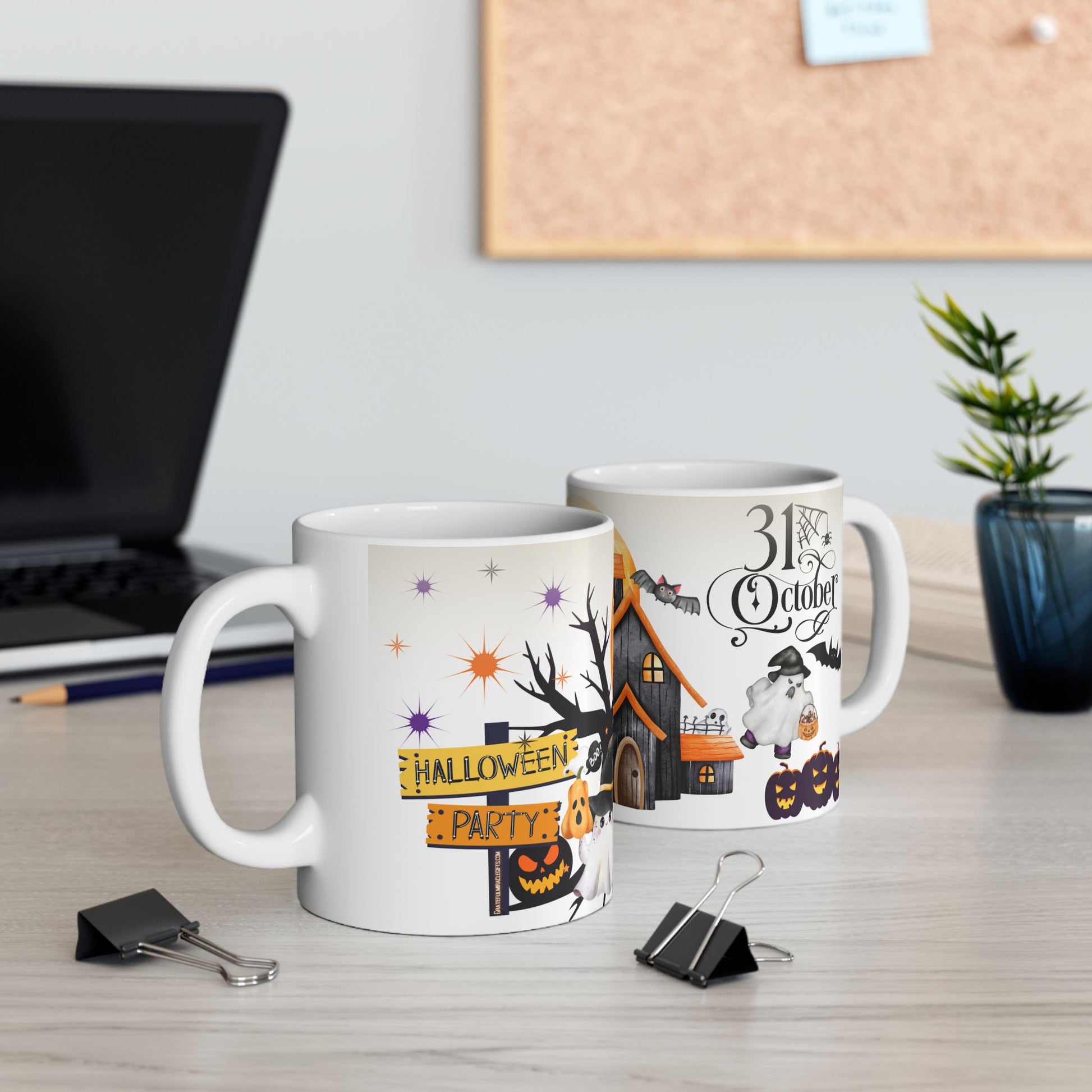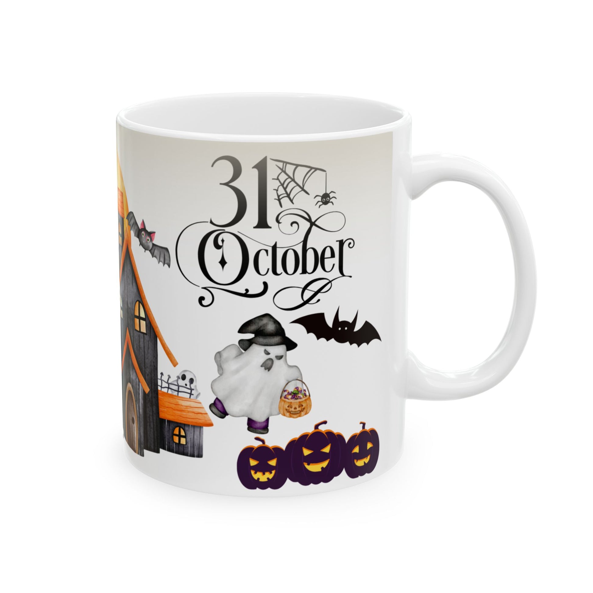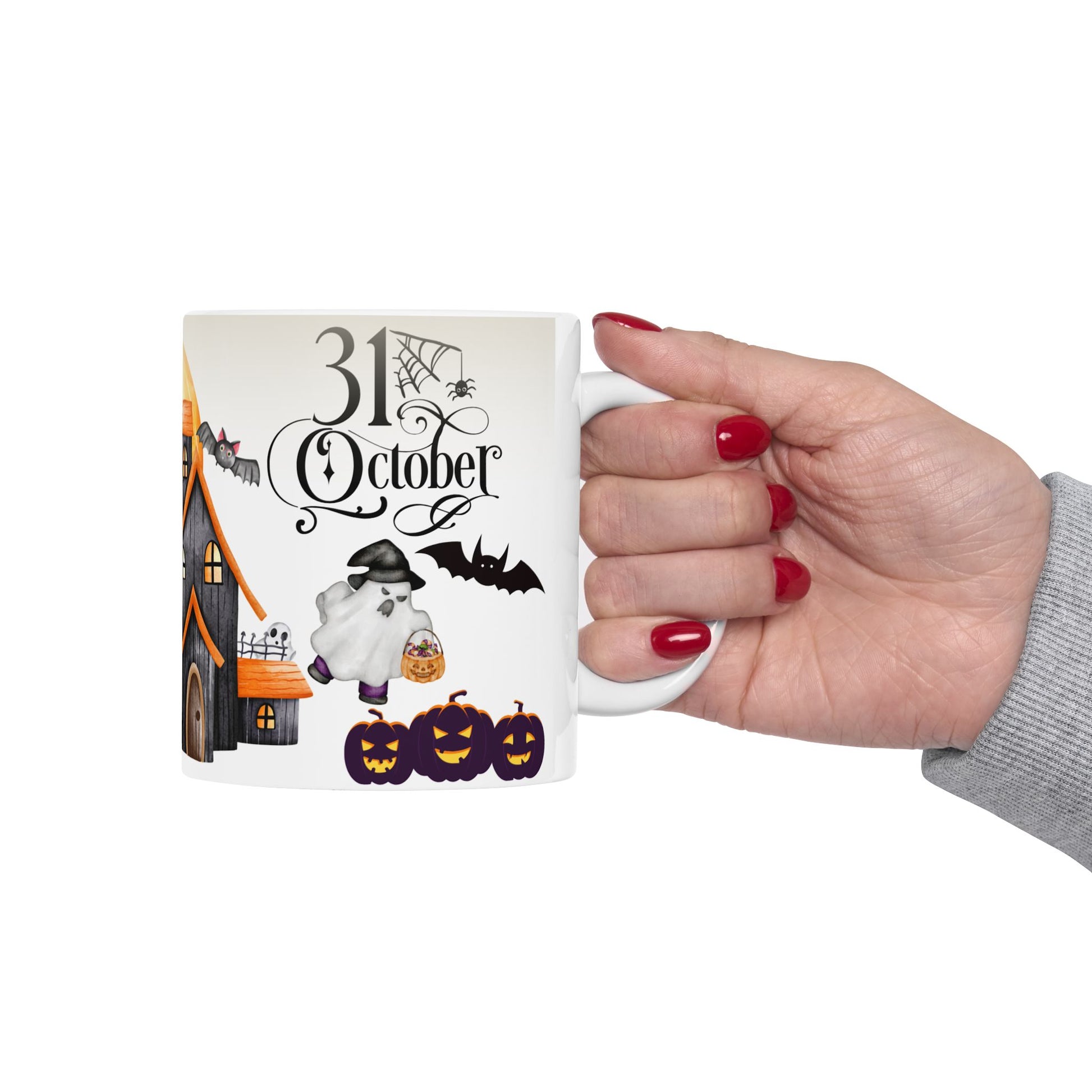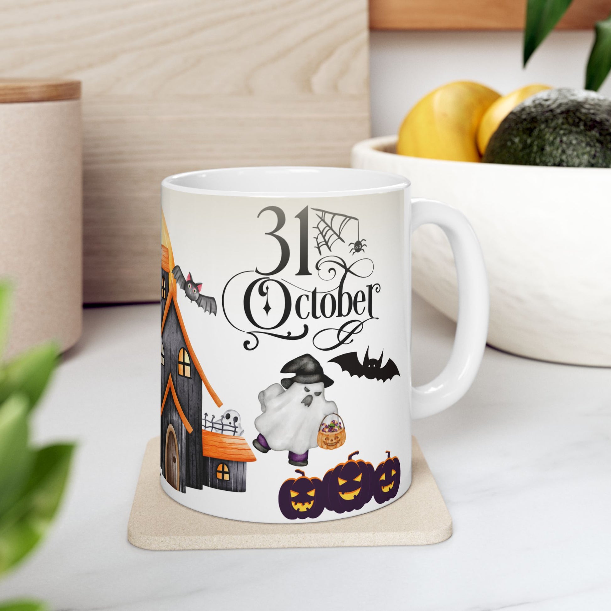 แก้วเซรามิกฮาโลวีน แก้วกาแฟชาสุดหลอน ลายผีฟักทอง ของตกแต่งบ้านฤดูใบไม้ร่วง ของขวัญธีมฮาโลวีน