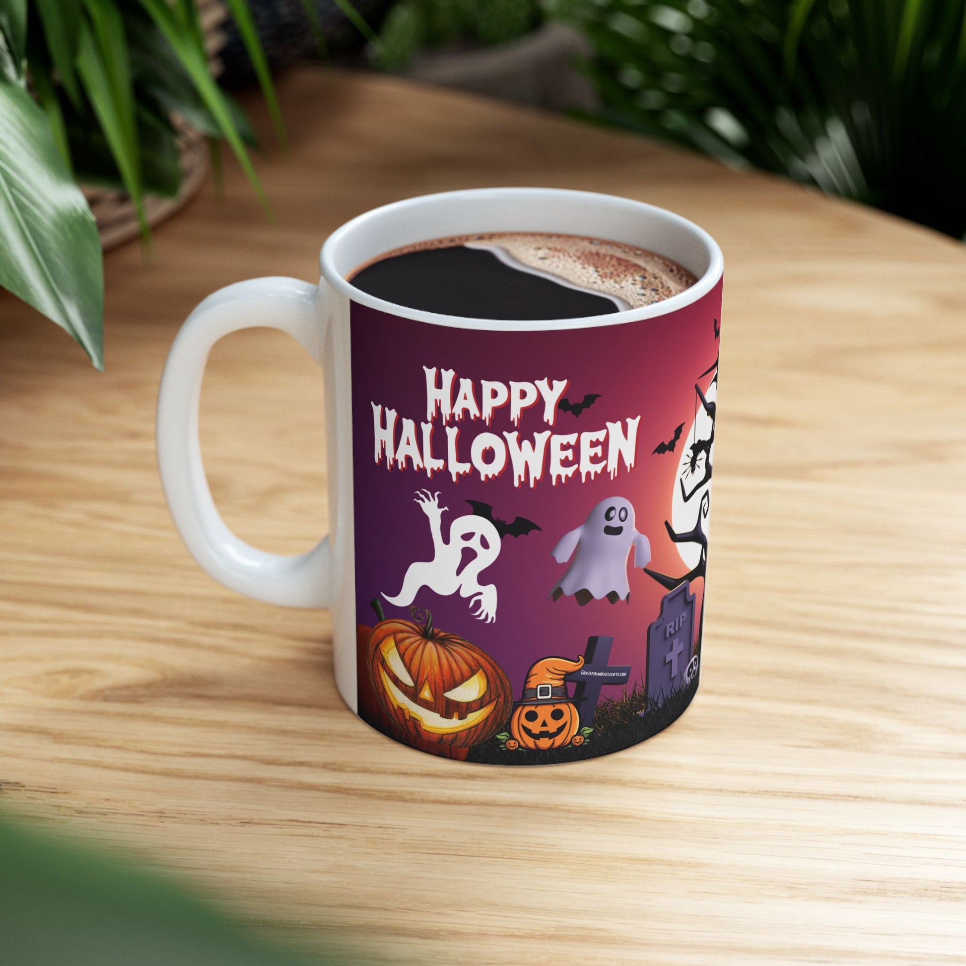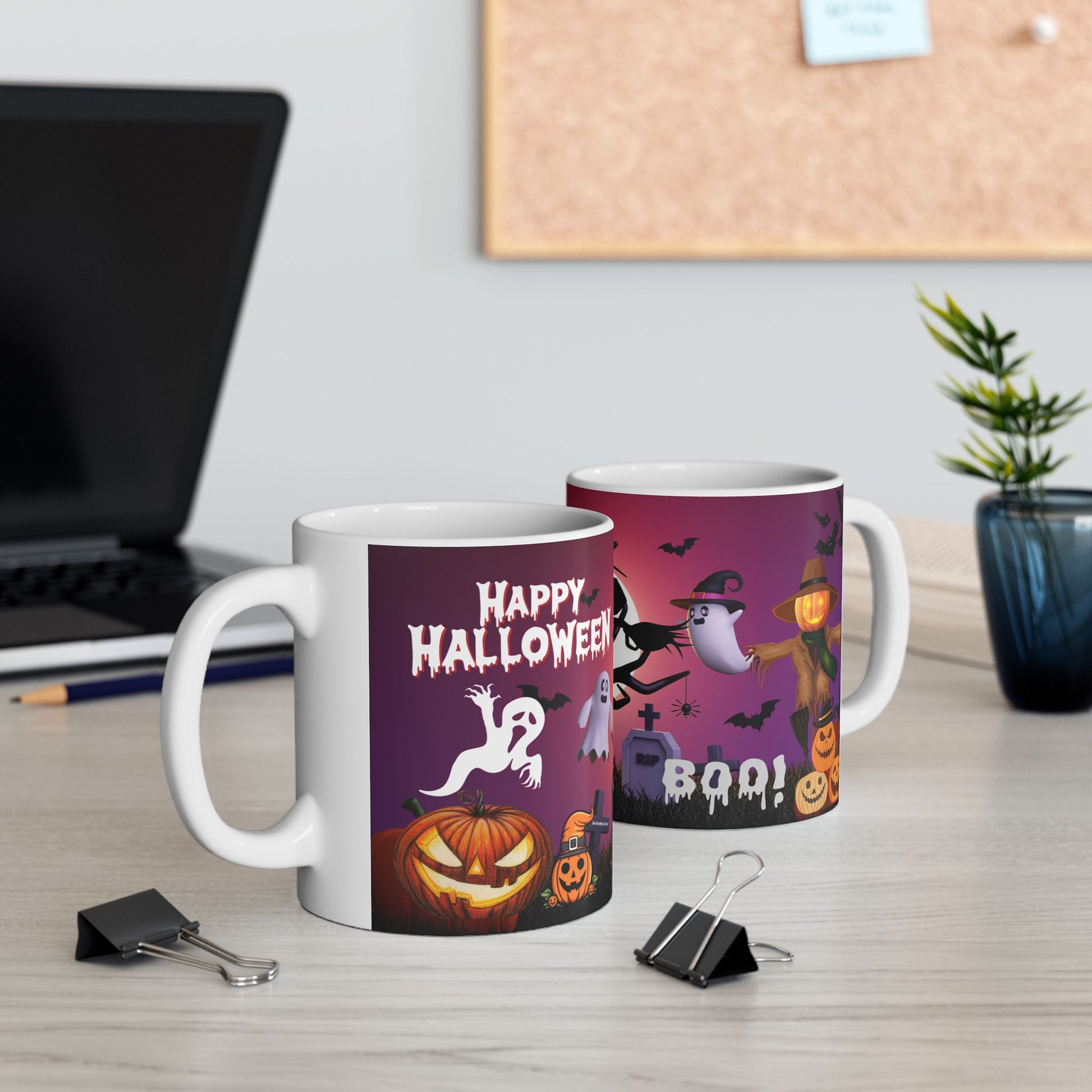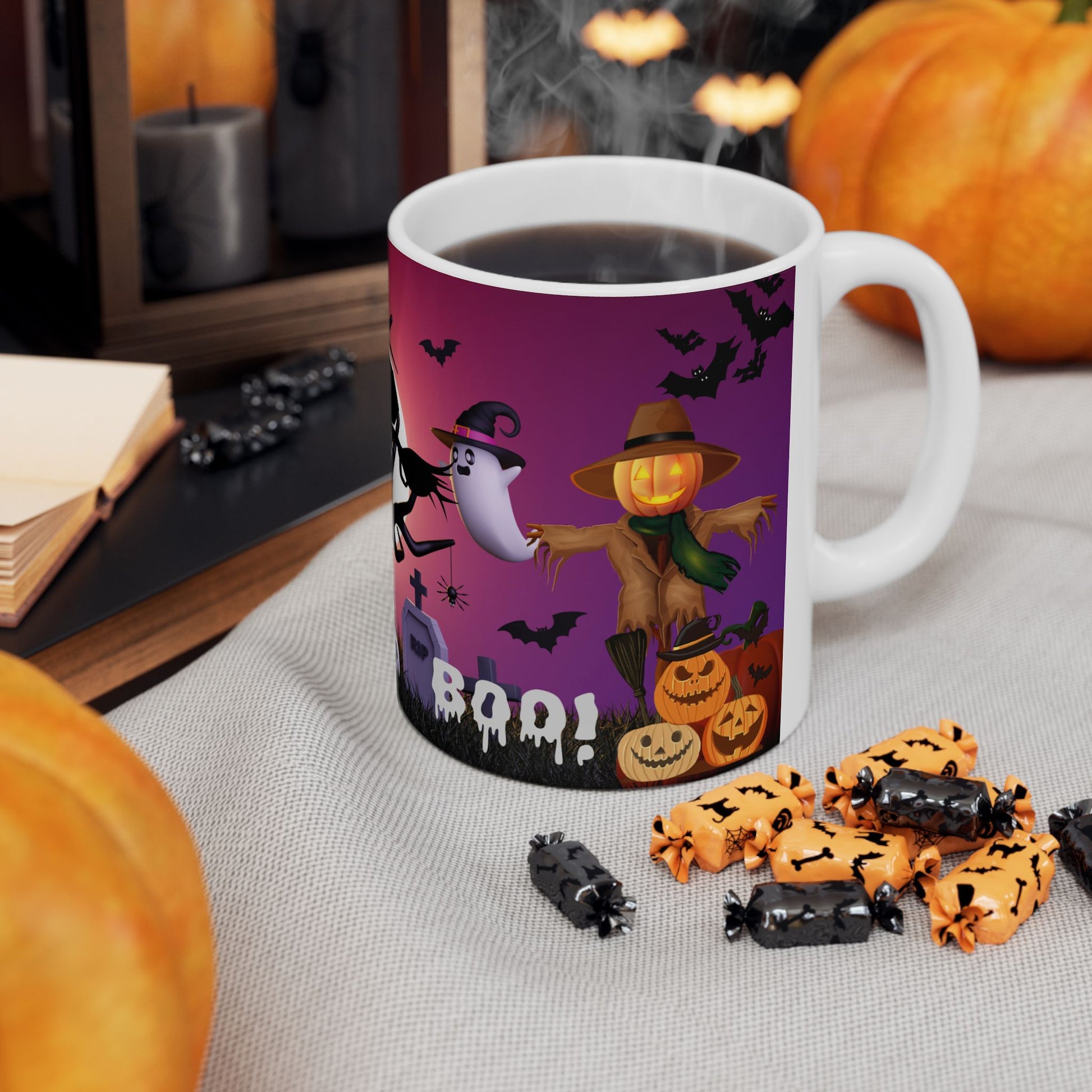 แก้วเซรามิกฮาโลวีนสุดหลอน แก้วกาแฟฮาโลวีน แก้วลายแม่มด ของขวัญวันฮัลโลวีน ลายผีและฟักทอง