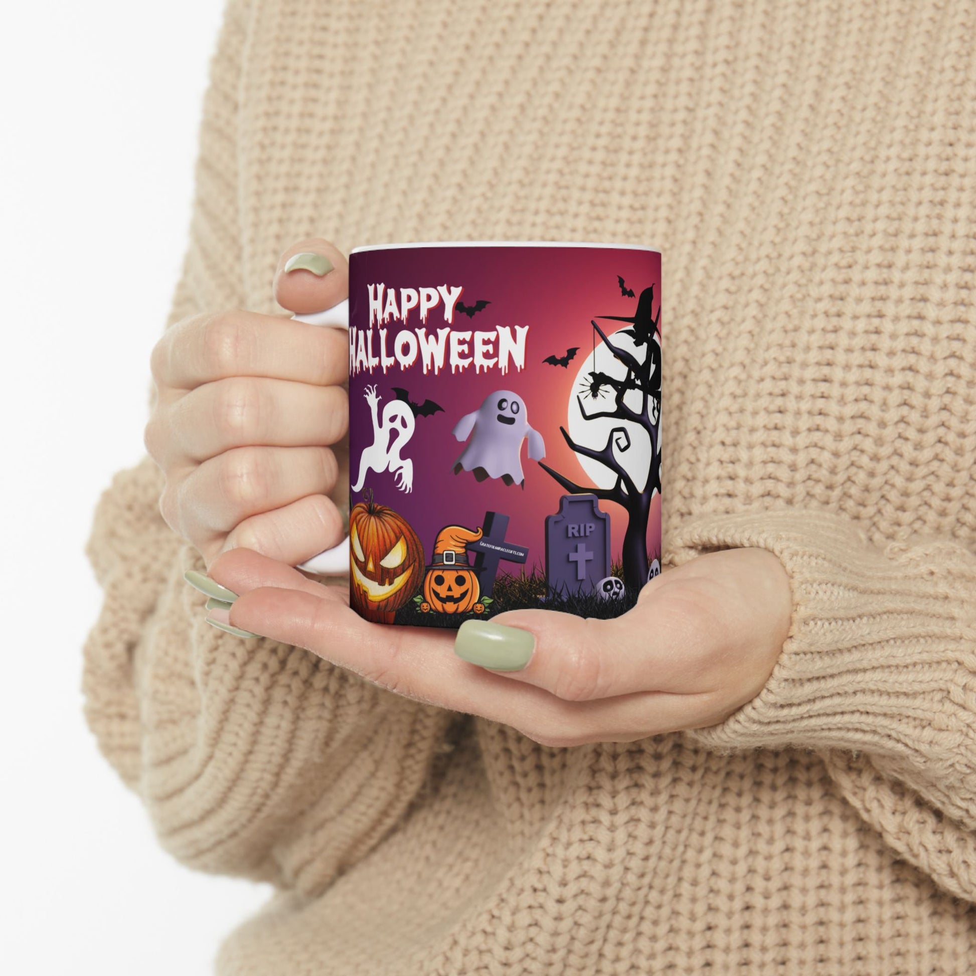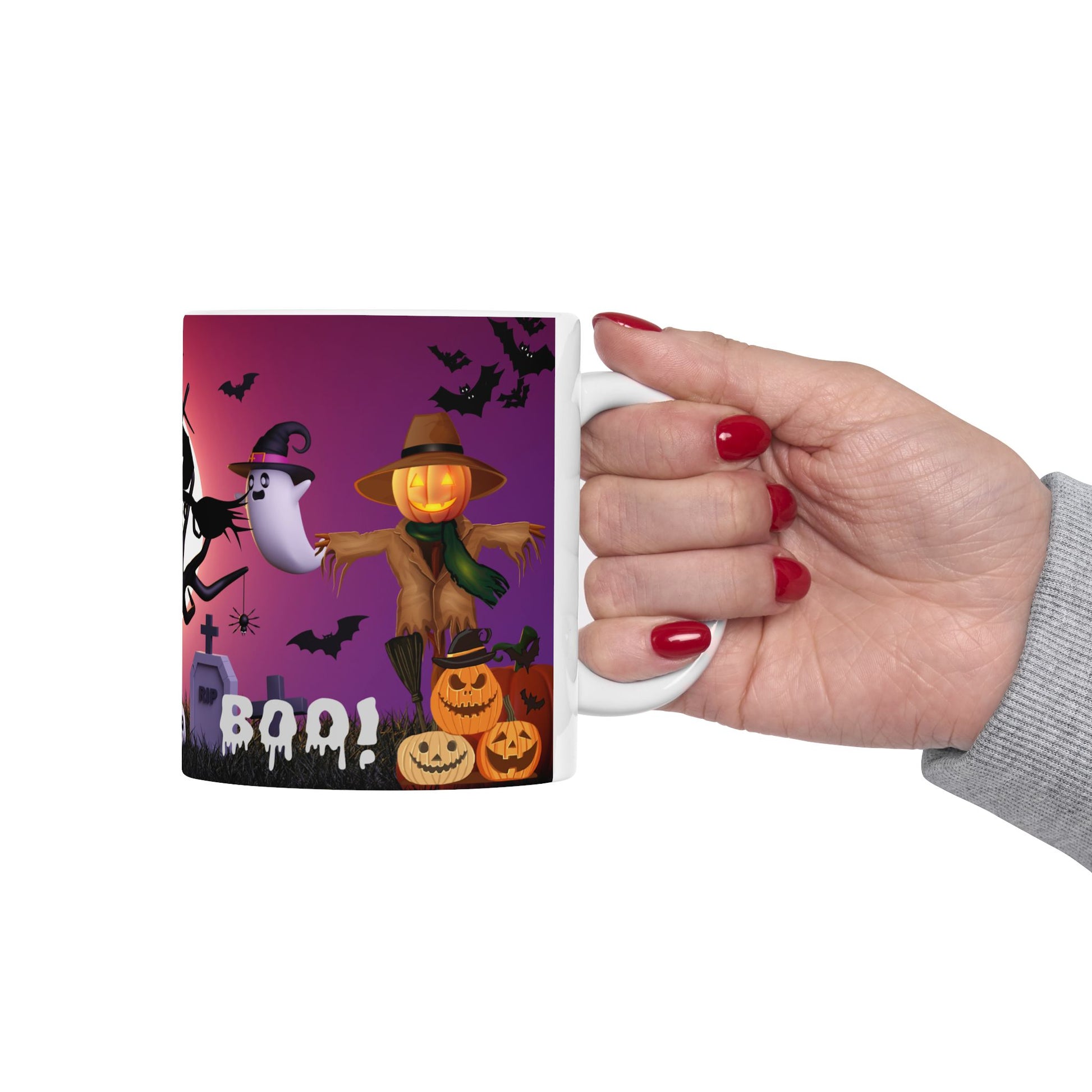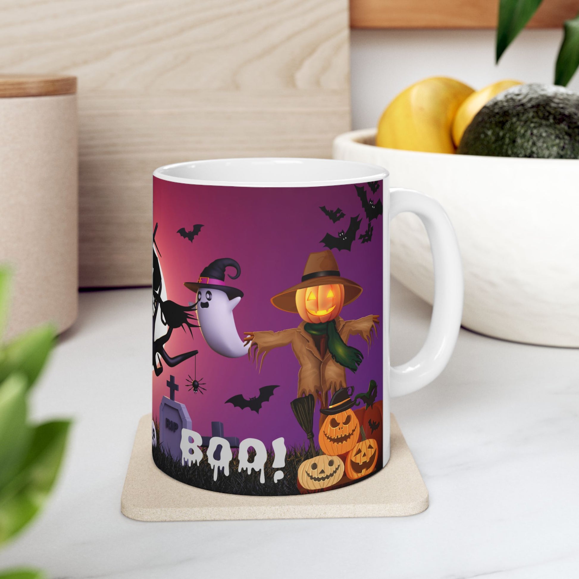 แก้วเซรามิกฮาโลวีนสุดหลอน แก้วกาแฟฮาโลวีน แก้วลายแม่มด ของขวัญวันฮัลโลวีน ลายผีและฟักทอง